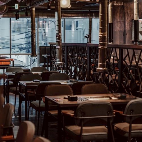 窓際の眺めの良いテーブル席と完全個室あり♪2名様からご利用可能です☆彡SNS映え抜群のネオンな店内です◎